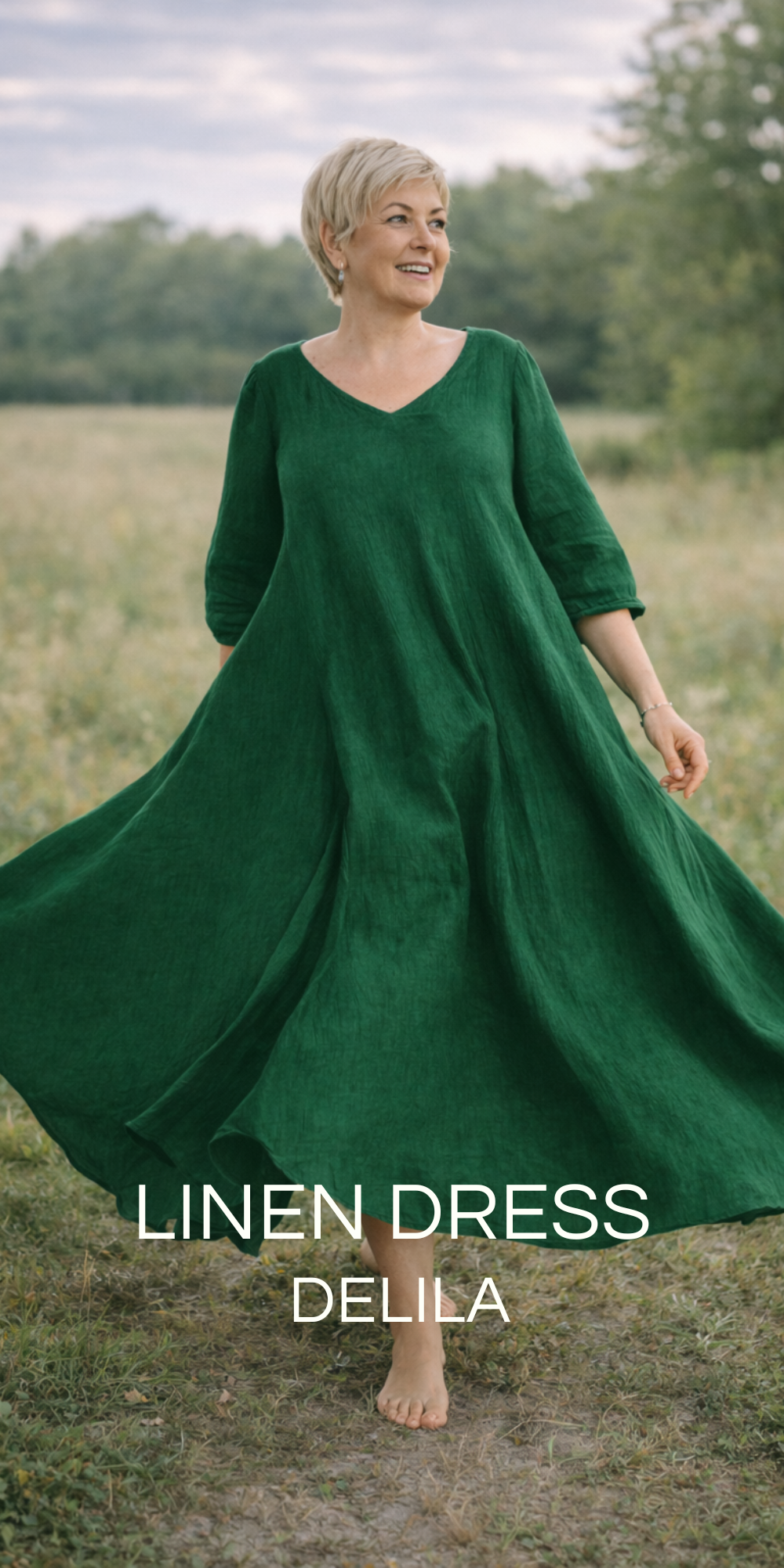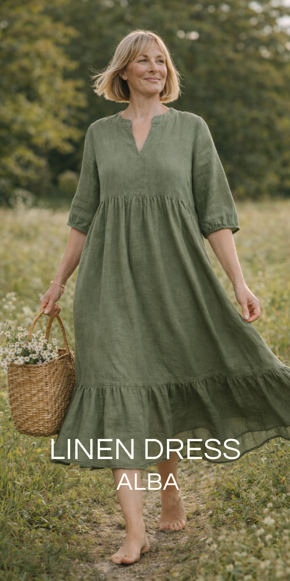 All measurements are taken from the dress laid flat. Linen fabric does not stretch – we recommend comparing the measurements with your body and allowing room for ease.