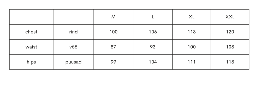 Model measurements: Chest: 38'2”/97cm | Waist: 32'7”/83cm | Hips: 39'4”/100cm
